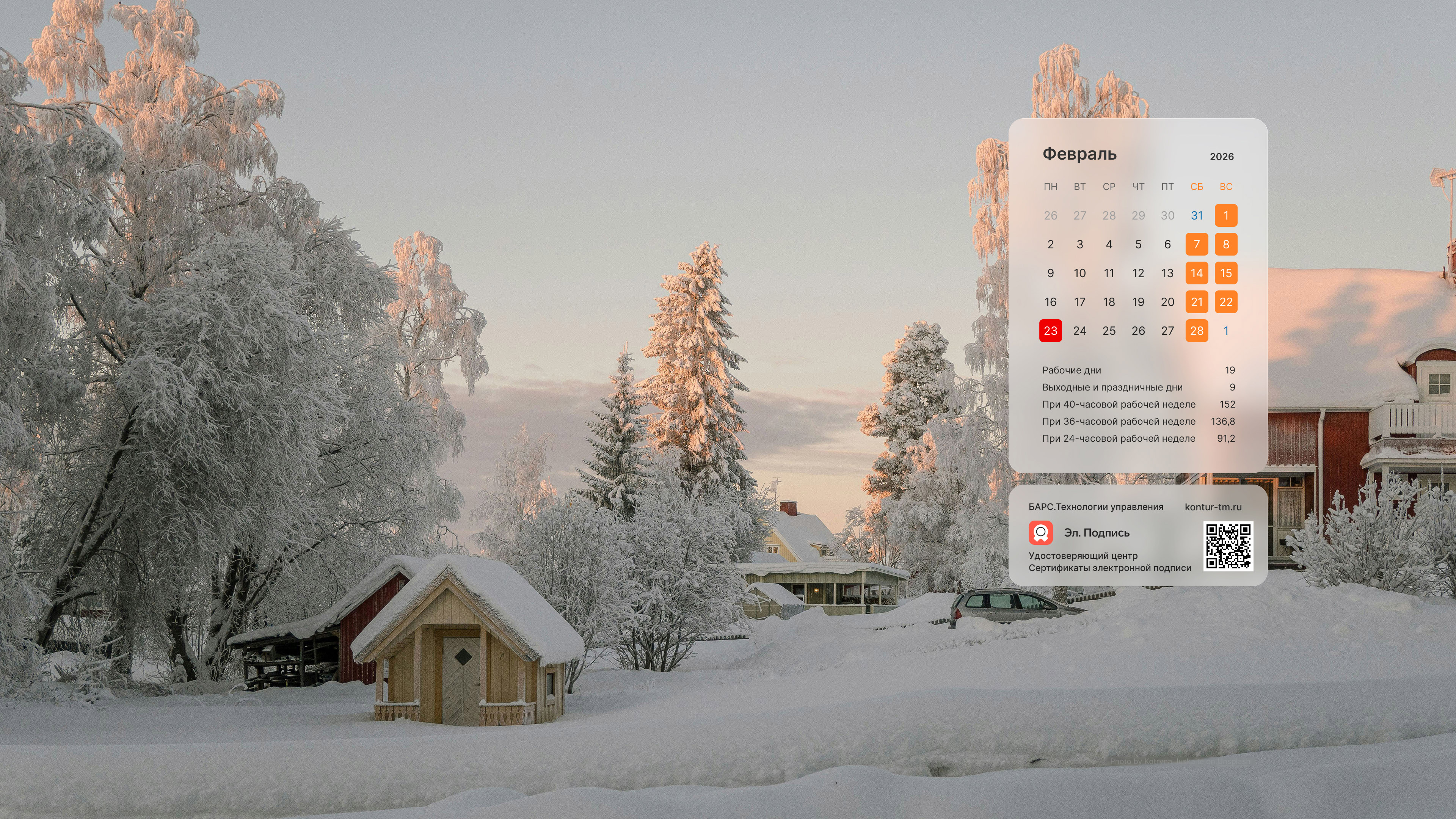 Календарь-заставка Февраль 2026